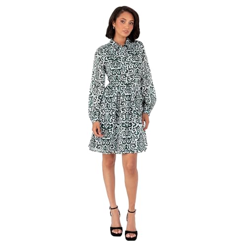 Lovedrobe Damtröja klänning dam mini långärmad punktkrage Lurex Paisley tryck smock skift smart ledig kontorskläder fest, grön 46, Färg: grön, 44