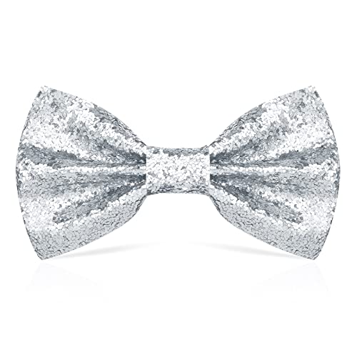 Grön paljettfluga glänsande metallisk fluga med justerbart remspänne glansig förknuten fluga för män ungkarl dans möhippa natt fest karneval jul fin klänning festival kostym, Siliver, 12*7cm