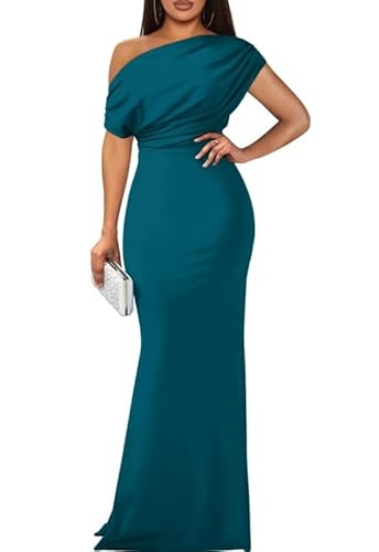TANMESSO Dam Off Shoulder Bodycon Maxi Klänning Elegant Ärmlös Formell Kväll Fest Lång Slits Klänning, Malakitgrönt, S