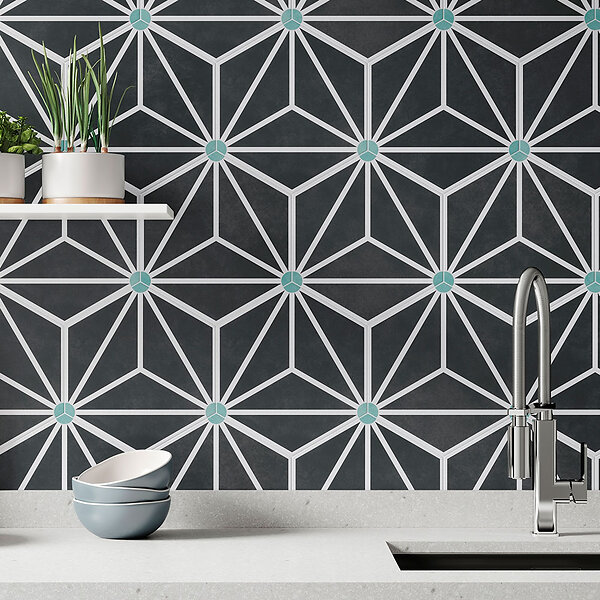 Hill Ceramic Marmor Hexagon Klinker Artis Vit-Svart-Grön Matt 15x17 cm