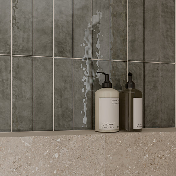 Hill Ceramic Kakel Velour Grå-Grön Blank 7,5x30 cm