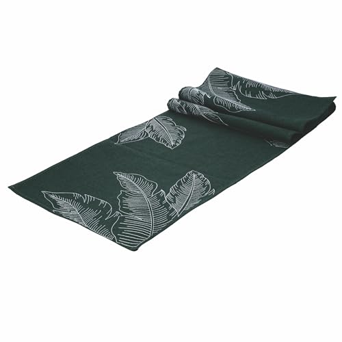 Grön löpare 40 x 173 cm i polyester, bladdekor, tropiskt blad