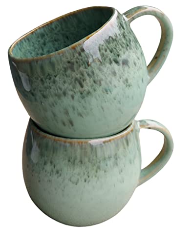 UNICASA Porslin-kaffekopp set med 4 stycken koppar med handtag 530 ml, porslinsmugg för te och kaffe, mjölk cappuccino, grön