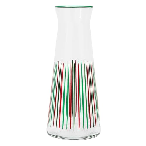 Talande bord röd, grön randig glaskanna karaff kannor, 25 cm smala halsade glaskaraffer för kylskåp, vatten, mjölk, iste, juice, dryck, vinkaraffer, jul, hemlig jultomte