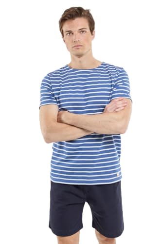 Armor Lux Heritage herr kort ärm rund hals lätt bomull sjöman, Mörk/mjölk, XL