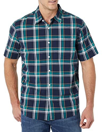 Amazon Essentials kortärmad stretch poplin skjorta för män (finns i stora och långa), grön marinblå medium pläd, XX-Large Large