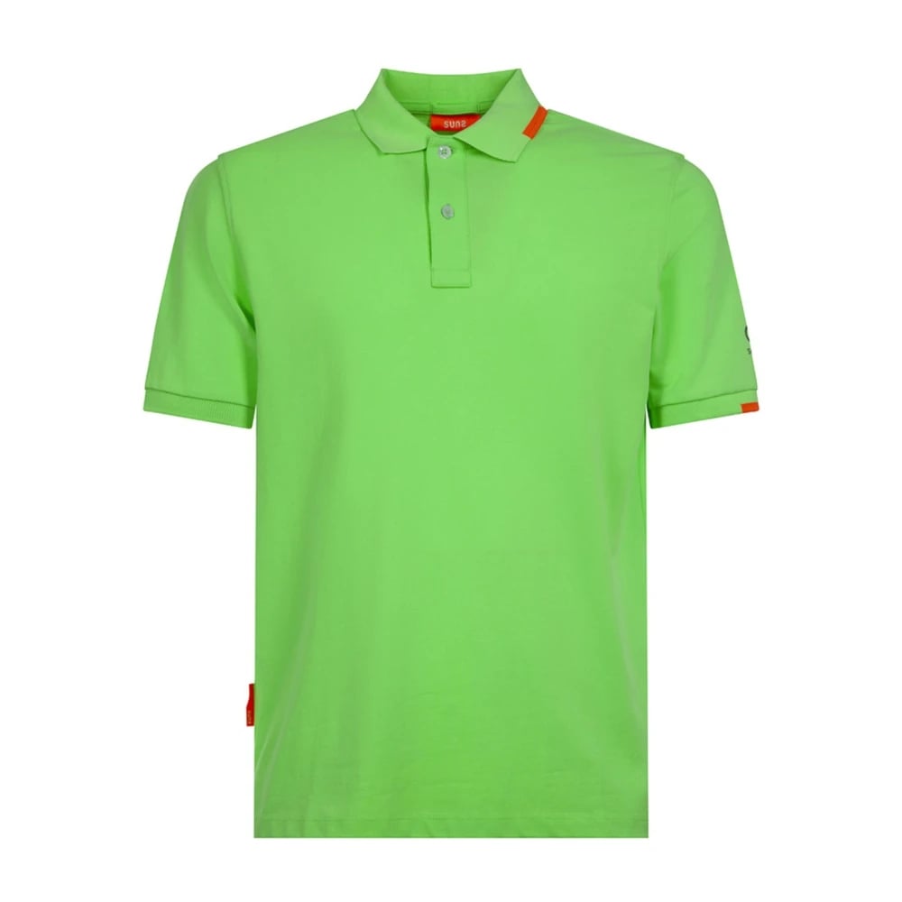 Suns, Toppar , Herr, M, Bomull, Klassisk Grön Polotröja med Fluorescerande Tag Detalj