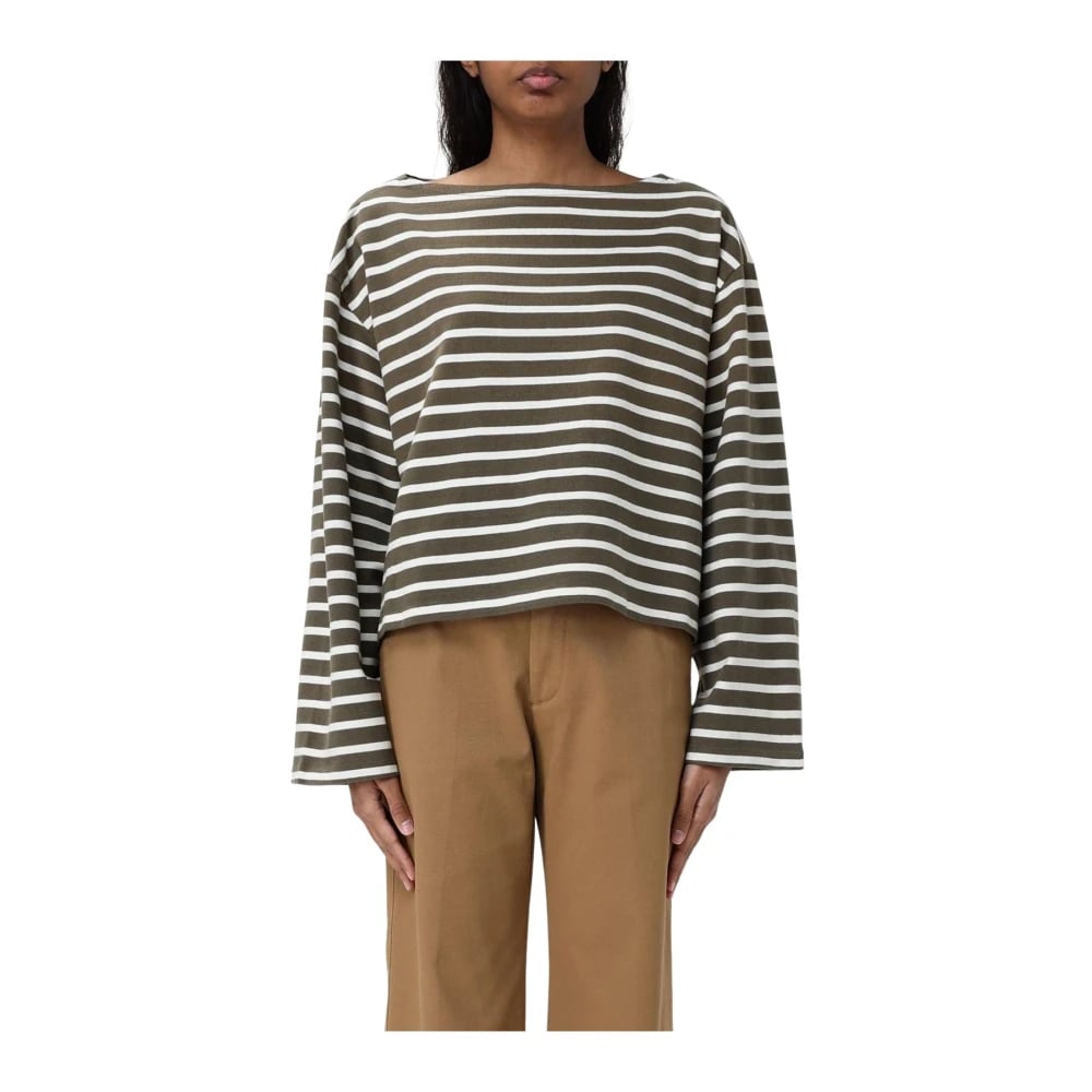 Marc O'Polo denim långärmad tröja för kvinnor med båtringning randig, Medium grön multi 03, XS