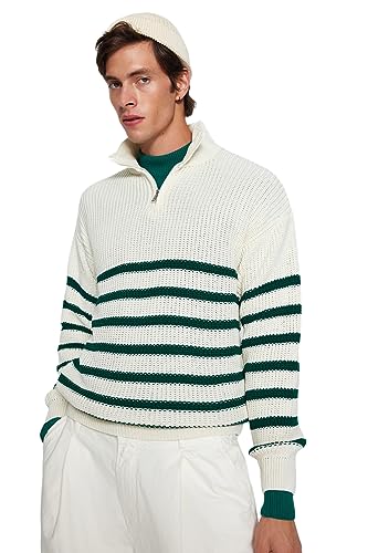 Trendyol herr rund hals randig smal tröja sweatshirt, Smaragdgrönt, XL