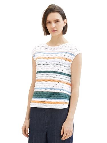 TOM TAILOR dam 1016350 tröja, 36570 – Röd grön stickad randig design, M