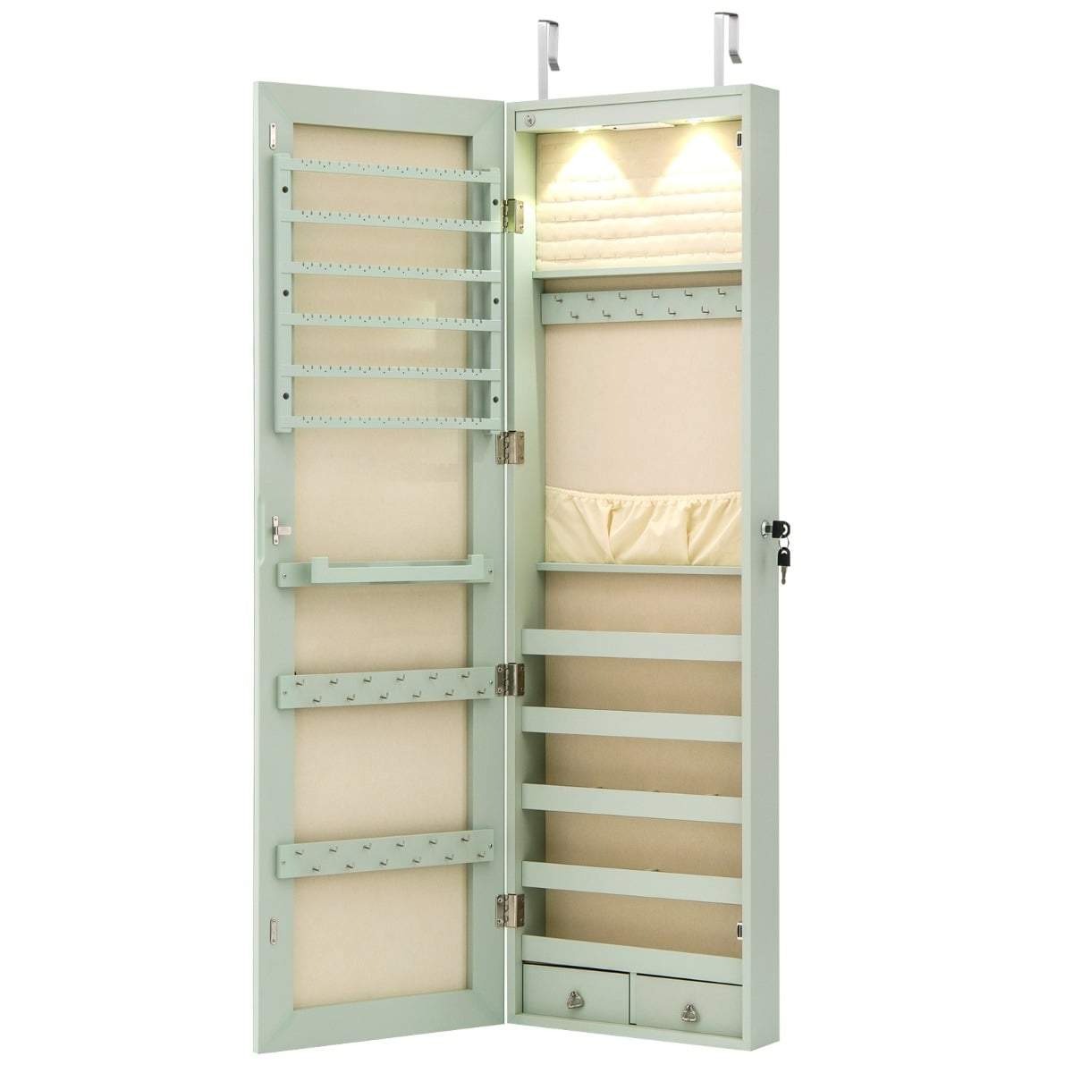 Smyckesskåp med LED, spegel och lås – Grön