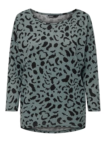 ONLY Dam tryckt 3/4-ärm lös rund hals tröja tunt mönster topp ONLELCOS, Chinois grön, M