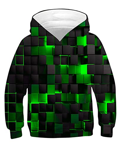 TUONROAD 3D-huvtröja barn pojkar flickor rolig huvtröja långärmad tröja 6–14 år, 1 C Geometrisk grön, 11-13 år