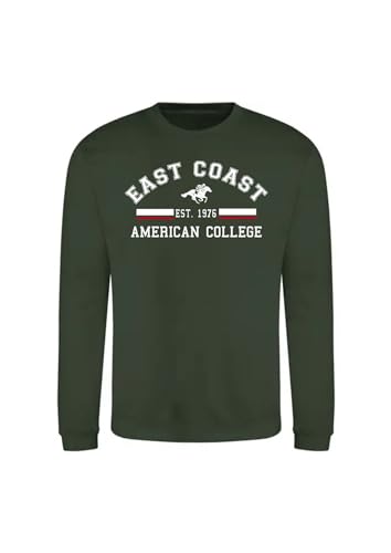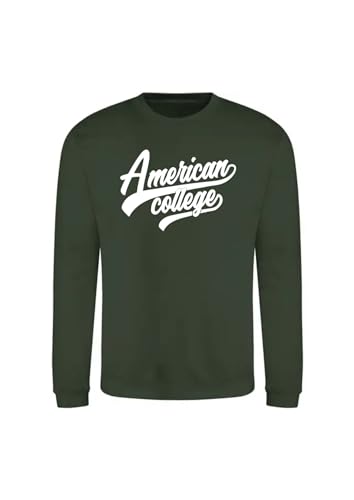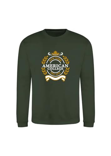 AMERICAN COLLEGE USA Tröja tröja med tryck varma kläder unisex barn pojkar och flickor casual modell ACSCRW1 mörkgrön 14 år, Färg: grön, 14 �r