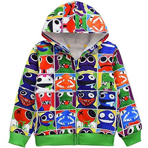 TONGQUD Huvtröja för pojkar barn dragkedja tecknad tröja mode jacka söt huva YouTube spel kläder, gRÖN, 9-10 år