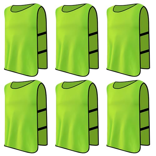 Ehuihuan 6 stycken fotbollsvästar, barnset. västar för sport och träning, träningsväst, baskettröja för barn, sporttröja, tröja för fotboll, nätboll, rugby, hockey, cricket och volleyboll, Grön, M