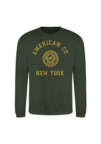 AMERICAN COLLEGE USA Tröja tröja med tryck varma kläder unisex barn pojkar och flickor casual modell ACSCRW2 mörkgrön 14 år, Färg: grön, 14 �r