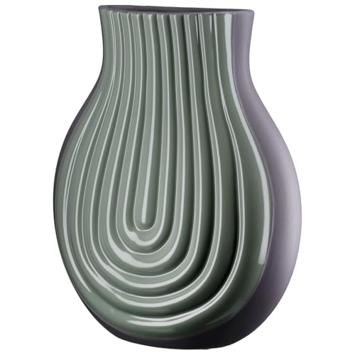 GILDE Vas curve av keramik – bukig – grön – glänsande – matt – räfflad – höjd 31 cm x bredd 25 cm – vattentät blomvas