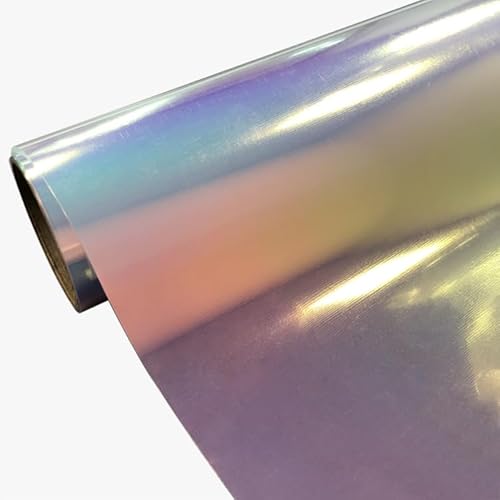 Creatorally Heat Transfer vinylrulle, 30,5 x 152 cm (12 tum x 5 fot) regnbåge holografiskt järn på HTV-papper, gör-det-själv värmepressdesign för t-shirt, kläder, hattar och textilier, lätt att klippa
