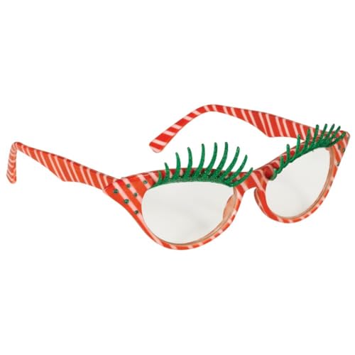 Amscan 397685-55 – Glasögon sockerstång, röd-vit-grön, unisex, roliga glasögon med ränder och ögonfransar, jultomten, jultomten, älva, helig kväll, temafest, karneval, karneval