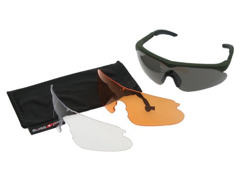 SWISS EYE Raptor Glasögon, grön gummiram, 3 glas, anti-imma/repskyddad beläggning [10163]
