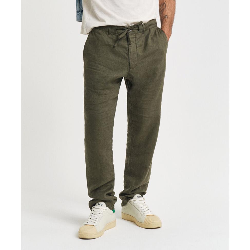 Sailwind herr dragsko sommar strand lösa byxor linnebyxor casual med elastiskt midjeband, B12 olivgrön, 46 SE