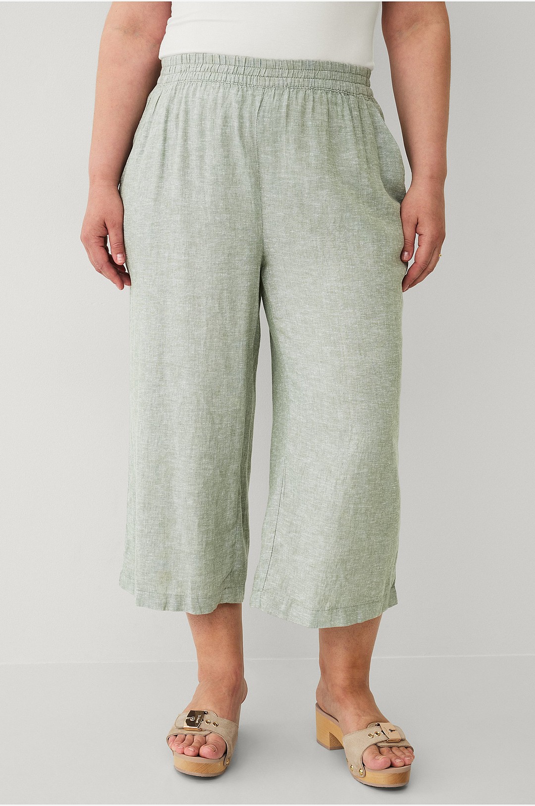 Street One dam 7/8 culotte linnebyxor, Mjukt gräs grön, 38W x 26L