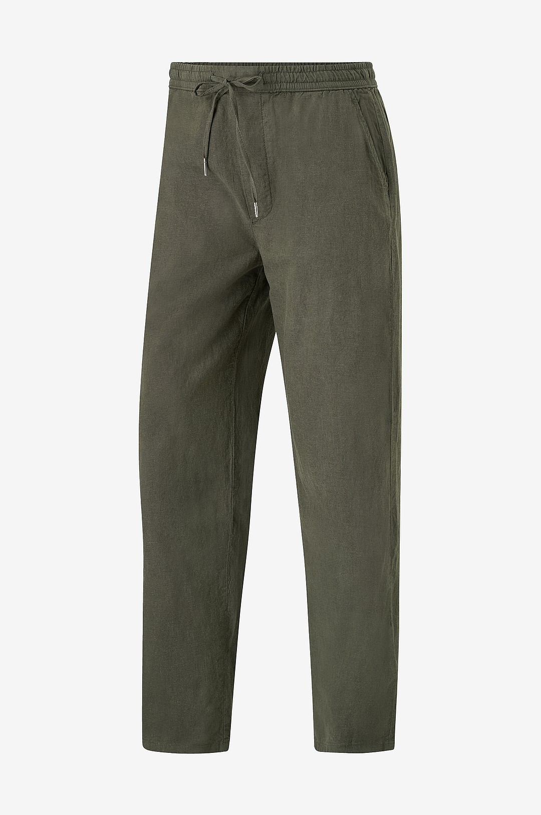 YAOBAOLE Herrbyxor linnebyxor herr linnebyxor herr långa med fickor elastisk midja universell passform, Armégrön, XL