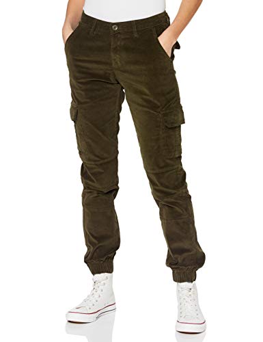 Urban Classics Dam, cargo, manchesterbyxor med hög midja, byxor, Mörk oliv, L