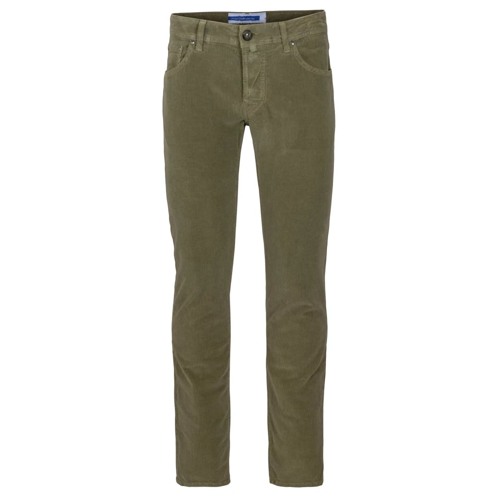 Jacob Cohën, Byxor , Herr, W33, Bomull, Gröna Slim Fit-manchesterbyxor
