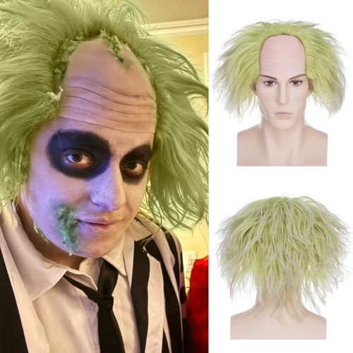 PARXITN Mäns peruk syntetisk korthårig peruk Cospaly Beetlejuice grön fluffig halloween kostym peruker för unisex