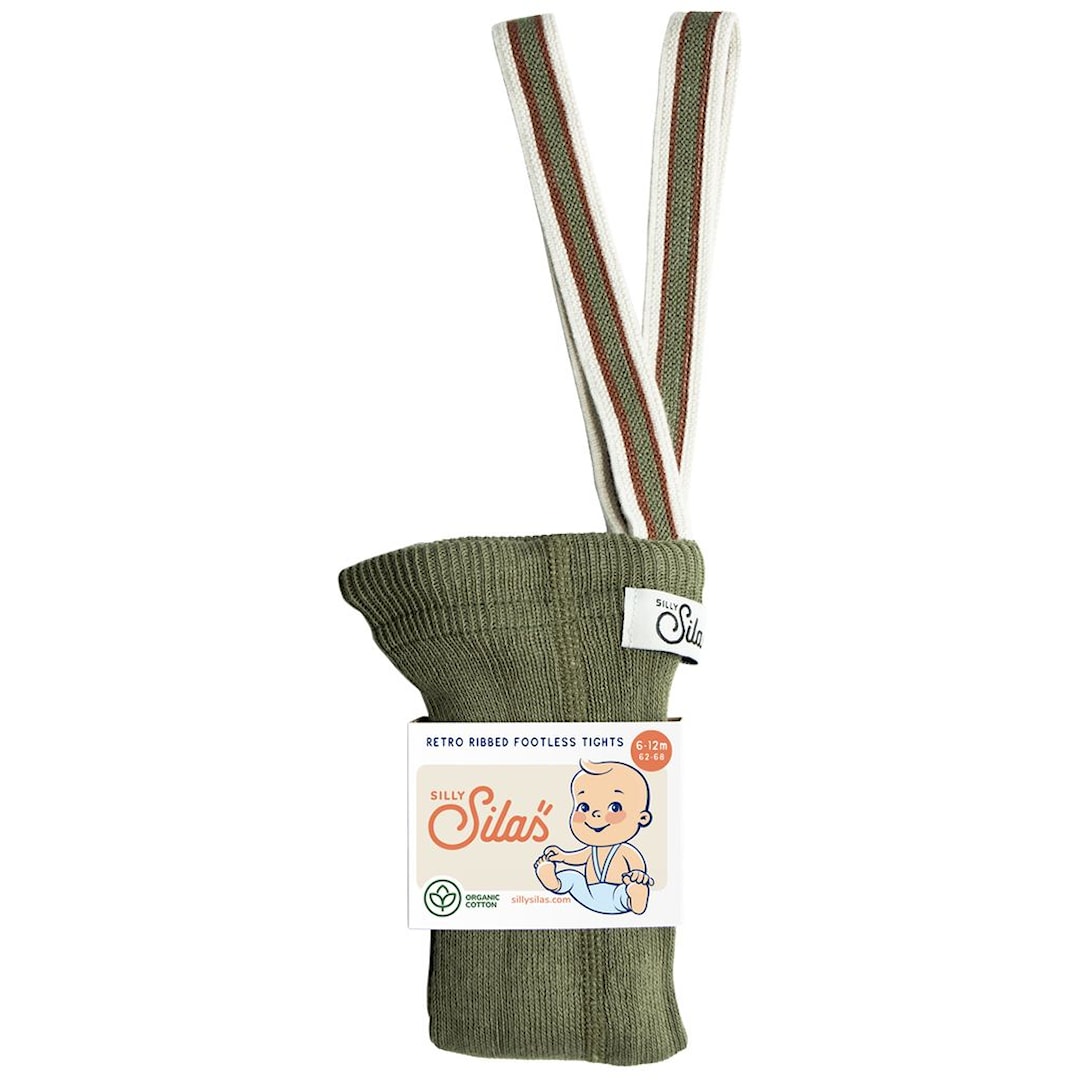 Silly Silas GOTS Fotlösa Strumpbyxor Olive Striped 3-4 Y Grön 3-4 år unisex