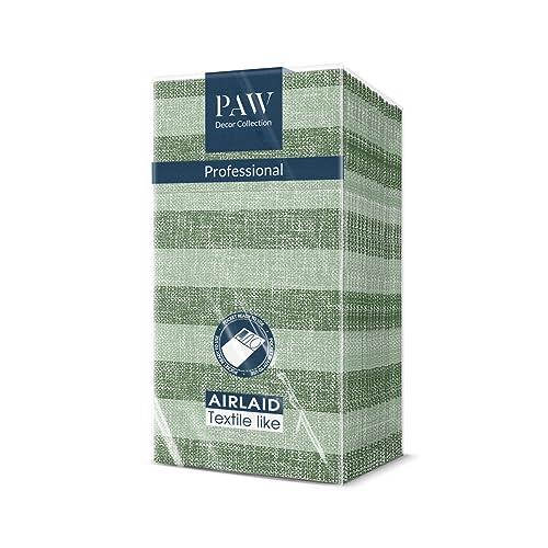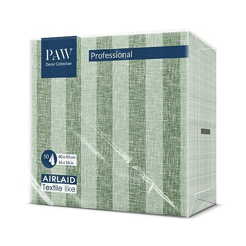 PAW – servetter av Airlaid – tygliknande (40 x 40 cm) I 50 stycken I perfekt för bröllop, dop, nattvardsgång, födelsedag I tygservetter – natur, grön, ränder I färg: grön rand