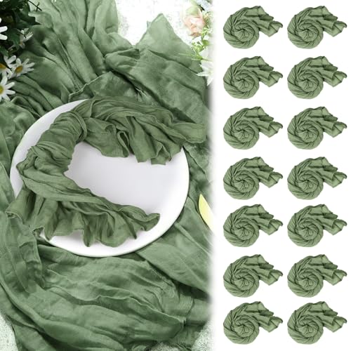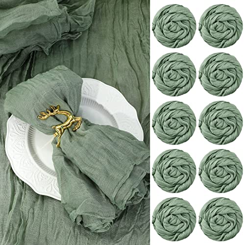 100 stycken gasväv ostdukar 50 x 50 cm middagsservetter med skrynkliga dekorativa tygservetter för hem bröllop rustik bordsdekoration (salvia grön)