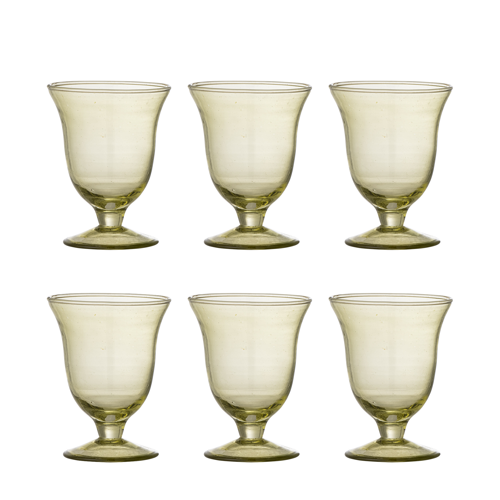 Bloomingville Florentine Vinglas, Grön, Återvunnet Glas Ø8xH10 cm, Set om 6