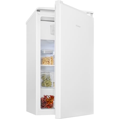 Bomann® kylskåp med frysfack, 83 liter, Energieffektiv, tyst och kompakt, 0°C - 8°C, steglös temperaturkontroll, 2 hyllor och grönsakslåda, LED-belysning, Vändbart dörrgångjärn, KS 7257 Vit