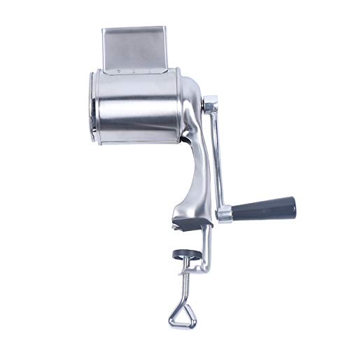 Manuell potatisrivare, rostfritt stål grönsakshyvel, grönsakssvarv, manuell trumskivare, rivjärn köksmaskin med 5 trummor rivjärn, kök, lätt att använda, silver, 10 x 24 cm