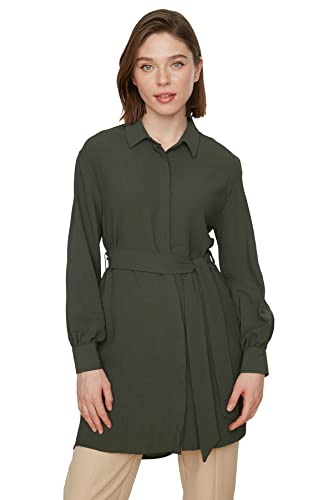 Trendyol Kvinnors grön bälte dold Pat-vävd skjorta för kvinnor, tunika, grön, 38