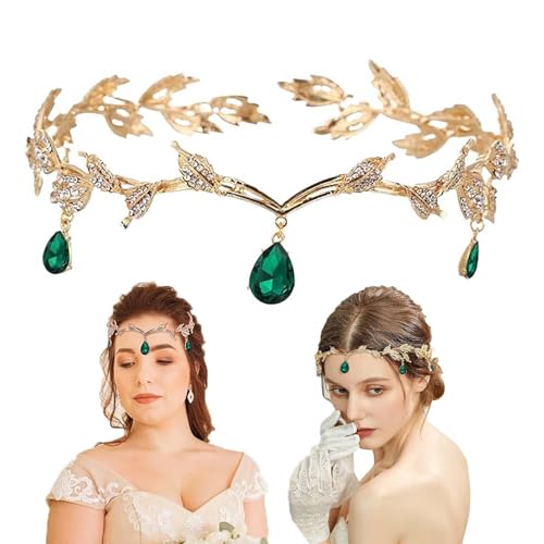 Yuqilin Elfenkrona tiara älvor huvudbonad blad kristall krona älva cosplay fe kostym damer hårband diadem, för kvinnor flickor cosplay renässans brud brudtärnor (grön)