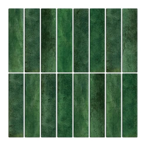 WoStick grön självhäftande kakel kök, 3D skala och stick plattor med vintage textur, lätt att rengöra rektangel Subway självhäftande kakel för kök badrum, 30,5 x 30,5 cm 10 ark