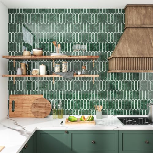 VEELIKE Lång fiskfjäll väggplattor självhäftande plattor för kök skala av och klistra fast kakel stänkskydd grön vinyl väggplattor klistermärken 6 ark självhäftande badrumsplattor vattentäta avtagbara