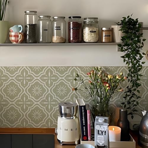 Targawerelax 24 pcs kakeldekor självhäftande kök badrum kakelklistermärken för köksväggplattor klistermärken tapet badrumsdekaler vattentätt självhäftande, kakel klistermärken, Grön retro mandala