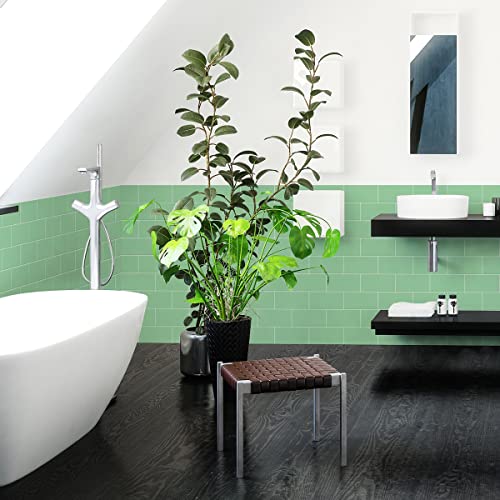 Alwayspon Kakeldekaler, 25 st x 15 cm, självhäftande, för att fästa på kakel, överföringsklistermärken för badrum, kök, stänkskydd, dra av och klistra fast, salviagrön-vit