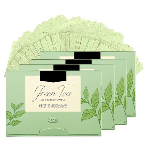 400 ark med absorberande ansiktsolja, naturligt oljeabsorberande papper, oljekontrollkort för fet hud, olja blotting paper set för kvinnor män (grönt te)