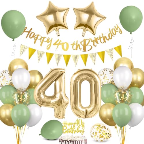 Dekoration 40 år - grönt och guld ballonggirlang kit för herr och dam födelsedag - grattis på födelsedagen banderoll