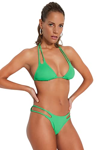 Trendyol Dam enkel stickad bikini set, grön, 34, gRÖN, 38 SE