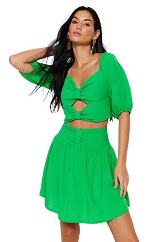 Trendyol Dam Dam Dam Enfärgad vävd Bluskjol Tvådelad Set Skjorta, gRÖN, 10