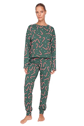 Koton Dam bomull fjäril tryckt pyjamas-set, Grön design (8d1), L