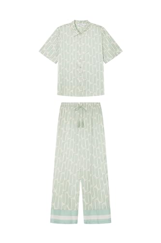 Women'secret Dam Set Geometriskt Tryck Capri Skjorta Pyjamas, Grönt tryck, S