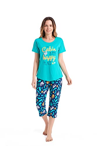 BERDITH Pyjamas-set för kvinnor, plusstorlek, 2 st bomull, sommar, kortärmad, mjuk, nattkläder, dam, bomull, korta byxor, Lat grön, M